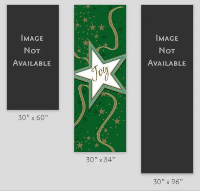 Joy is in the air! A full color digital print on durable 18 oz. reinforced vinyl. Two-sided; same art both sides. Produced on demand in the following sizes as a stock item: