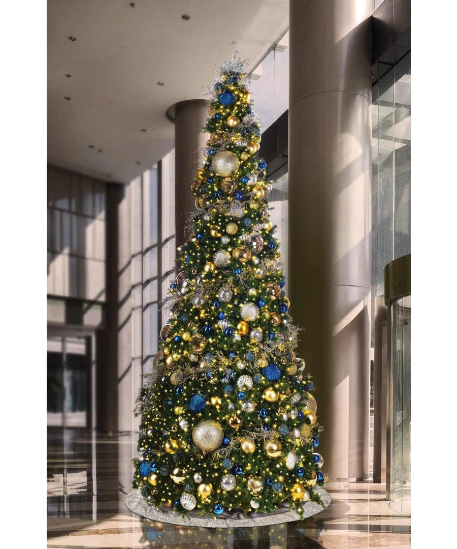 Our stunning Monarch Christmas Tree has a slim line profile with a life-like appearance that will brighten any commercial interior or exterior space. With its lush, “spring-back” foliage and energy-saving LED mini-lights, The Monarch brings holiday magic to any holiday design theme. And its rugged frame construction allows for easy assembly and simple storage season after season.