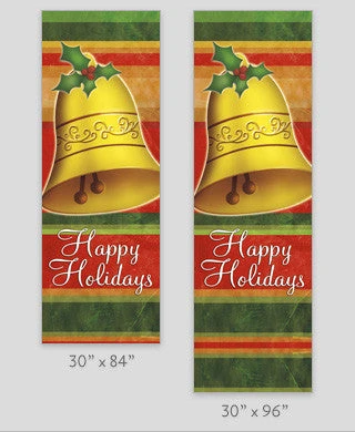 Ring in the Holidays! A full-color digital print on 18 oz. reinforced vinyl. Double-sides; same art both sides. Produced on demand in the following sizes as a stock item: