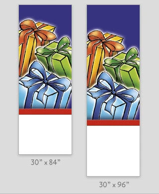 Wrap up your Holiday! A full-color digital print on 18 oz. reinforced vinyl. Double-sided; same art both sides. Produced on demand in the following sizes as a stock item: